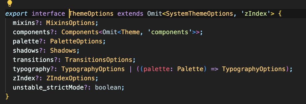 Based on mui, Here’s the ThemeOptions interface, this will make our writing code is super easy and straightforward. How?