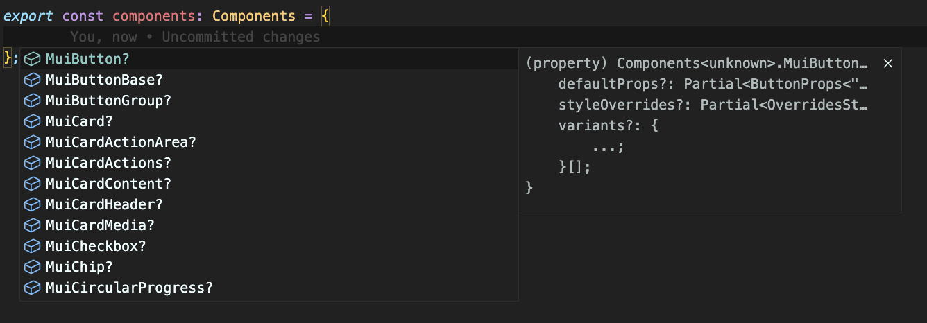 First thing, let’s create our type for the MuiButton component theme, open the theme/components/button.ts